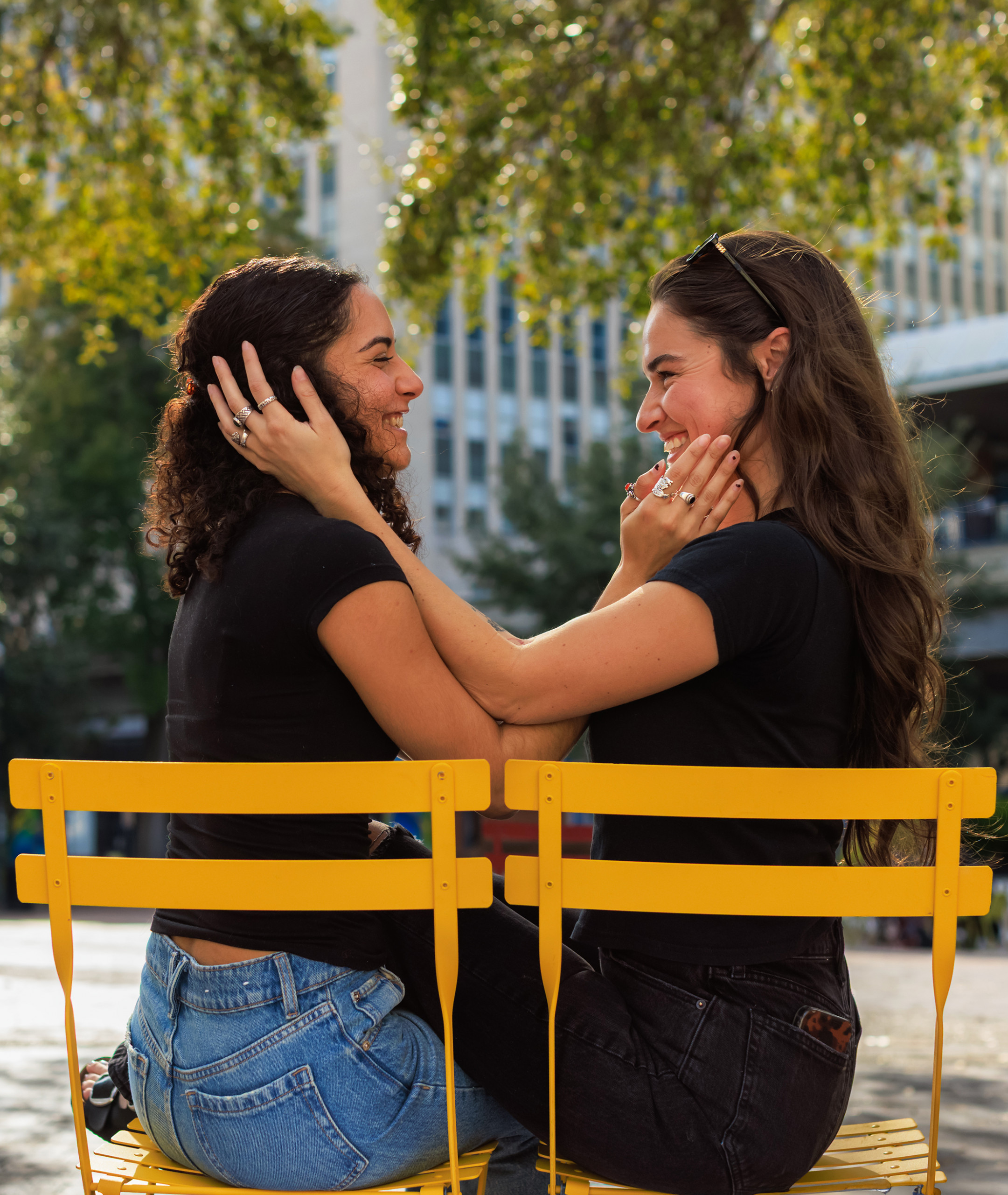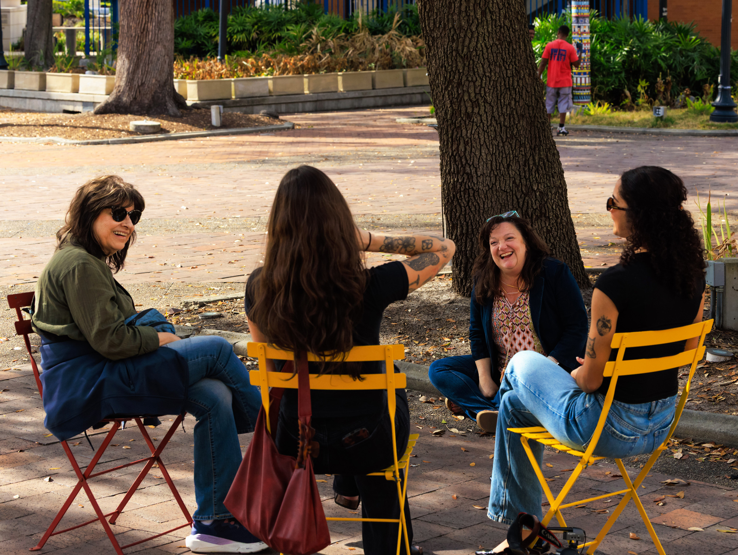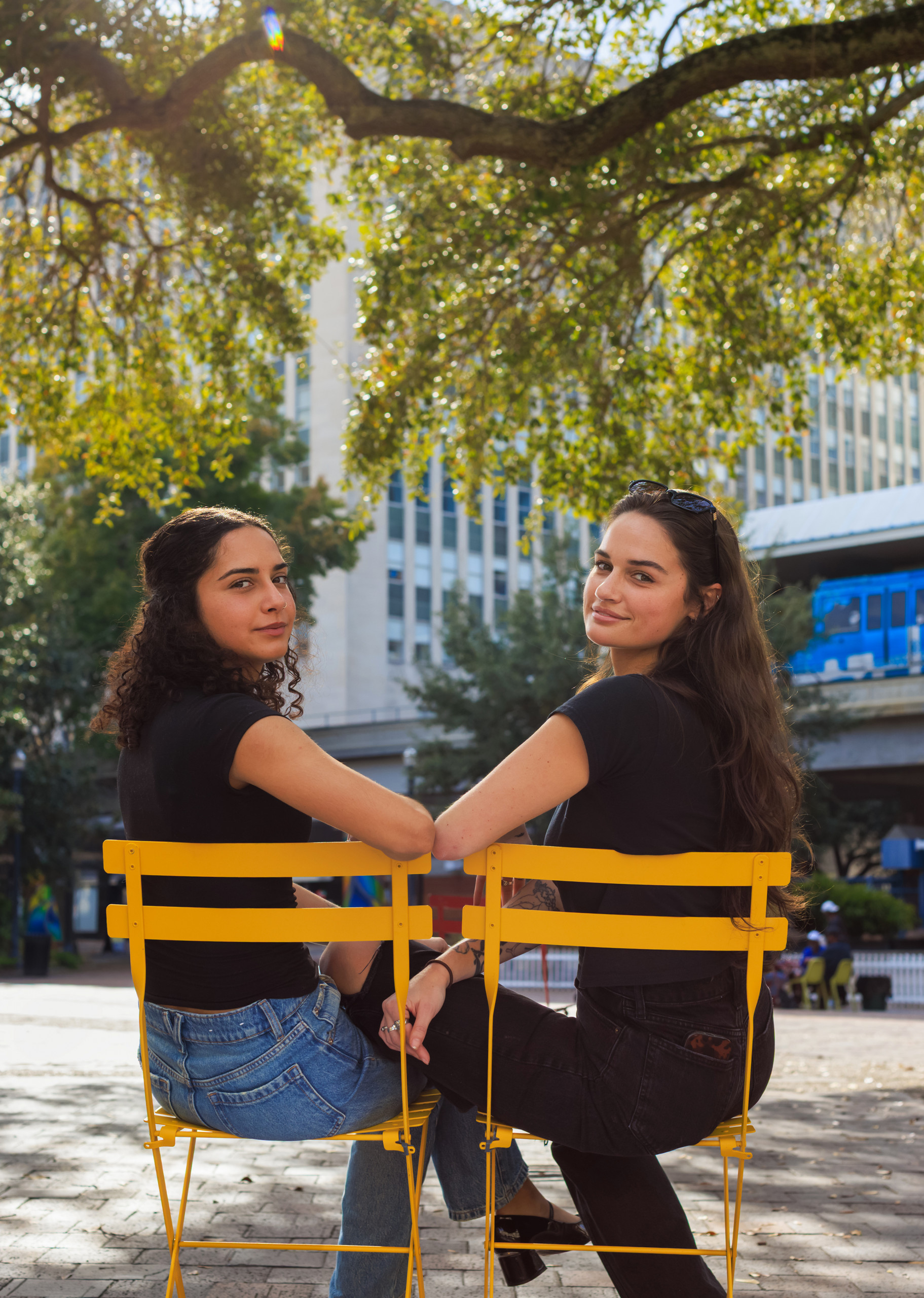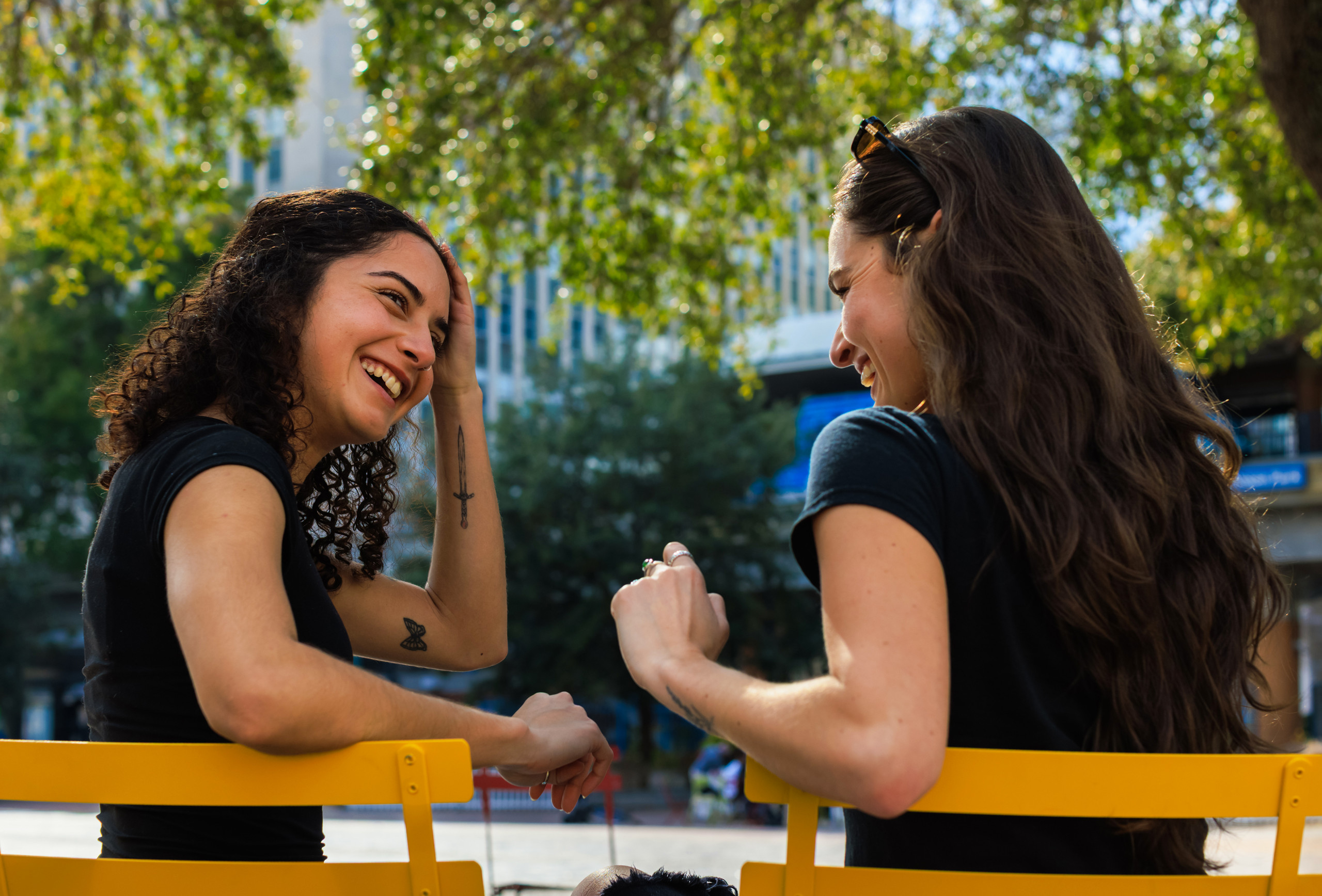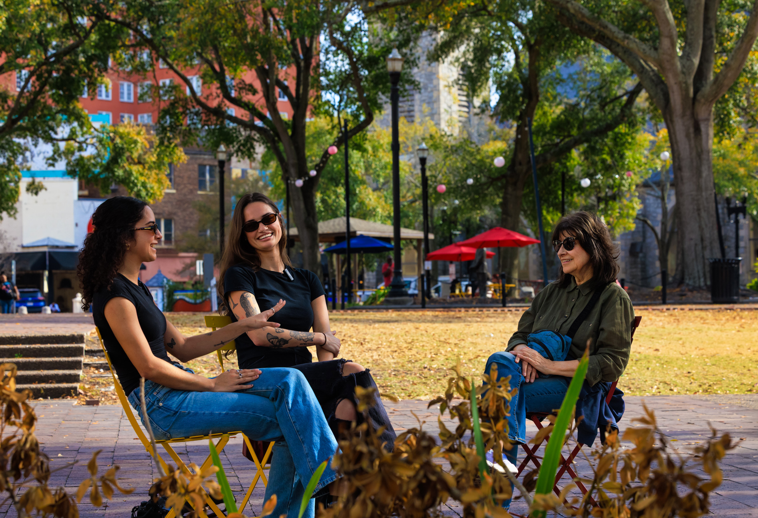 CARMEN: Me and Ambar, we work together at Folio, whenever we were in the Laura Street office. When we first started, Amber was really shy, and I kept asking her to come get lunch with me. She finally said yes, and we came down to the Park. We sat in those chairs over there.