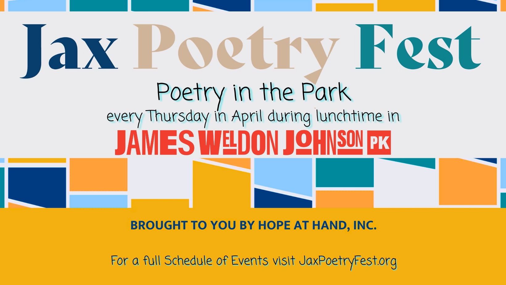 Visit www.jaxpoetryfest.org for the full schedule of events. We’ll see you in the Park!